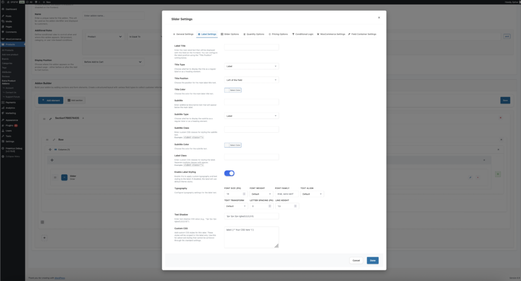 Follow these comprehensive step-by-step instructions to add a Slider to your WooCommerce products. This guide covers all essential settings organized into General Settings, Label Settings, and Slider Options.