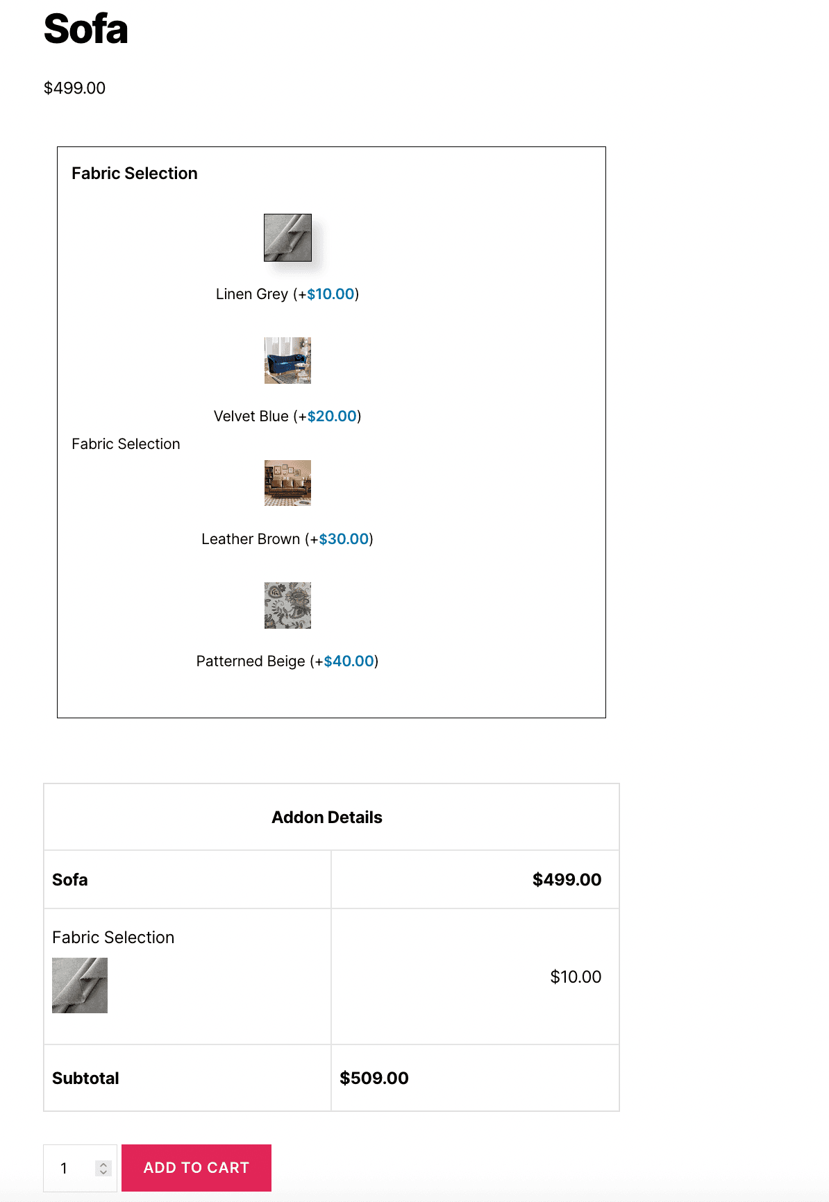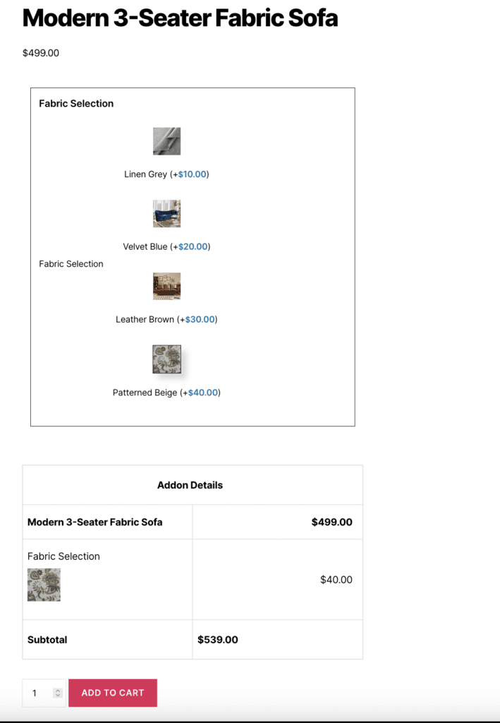 - Links addon quantity to the main product quantity, so addon quantities automatically match the product quantity.