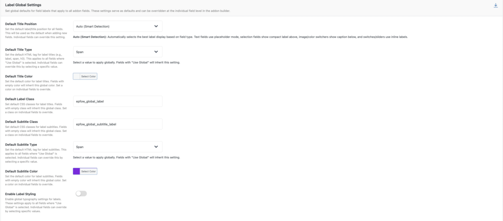 Label Global Settings (Default Title Type, Color, Class)